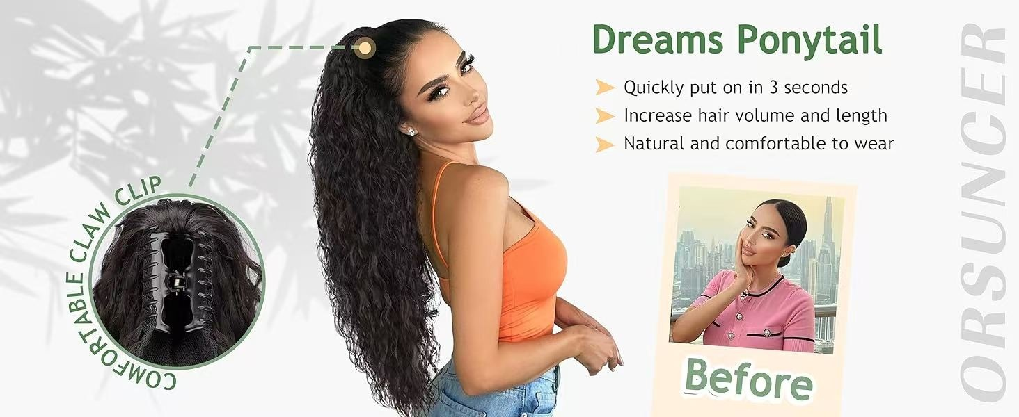 NATURAL WAVY TEXTURE - This ponytail extension has a soft, wavy water texture for a natural and voluminous look - perfect for easily enhancing your hairstyle.